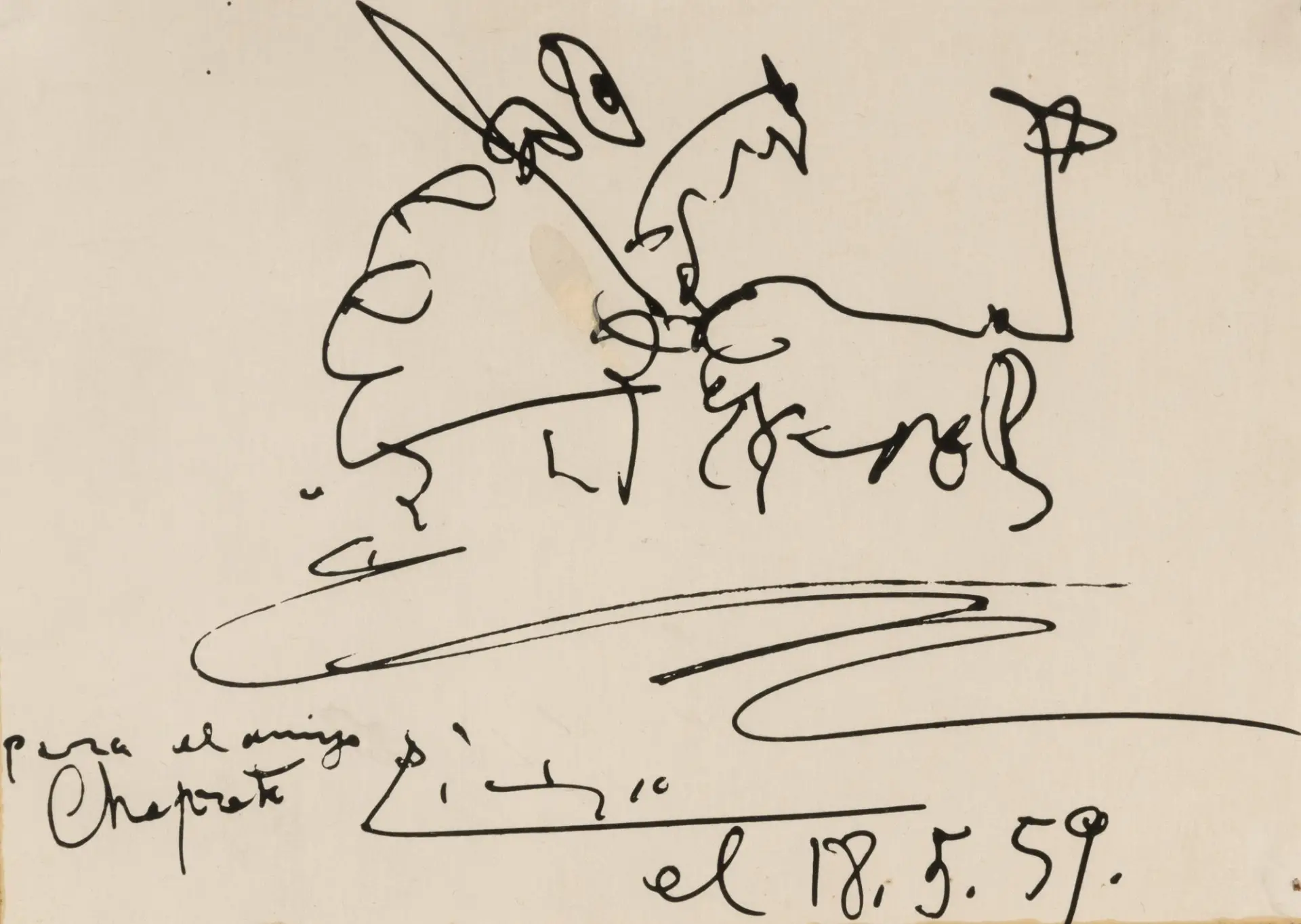 Unul dintre accentele licitației îl constituie o lucrare de Pablo Picasso, „Scenă de coridă” (1959), realizată în tuș pe hârtie, semnată, datată și dedicată „para el amigo Chaprate” („pentru prietenul meu Chaprate” – unul dintre fotografii artistului). Este prima lucrare de Picasso (care nu este un multiplu, de tipul gravurii ori serigrafiei) scoasă vreodată la licitație în România. Prețul de pornire este de 8.000 de Euro.