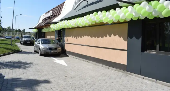 Noul restaurant construit pe o parte a terenului fostei unităţi militare din Slatina are o suprafață de 400 de metri pătrați, o terasă în aer liber, McDrive, un spațiu de joacă exterior și o parcare.