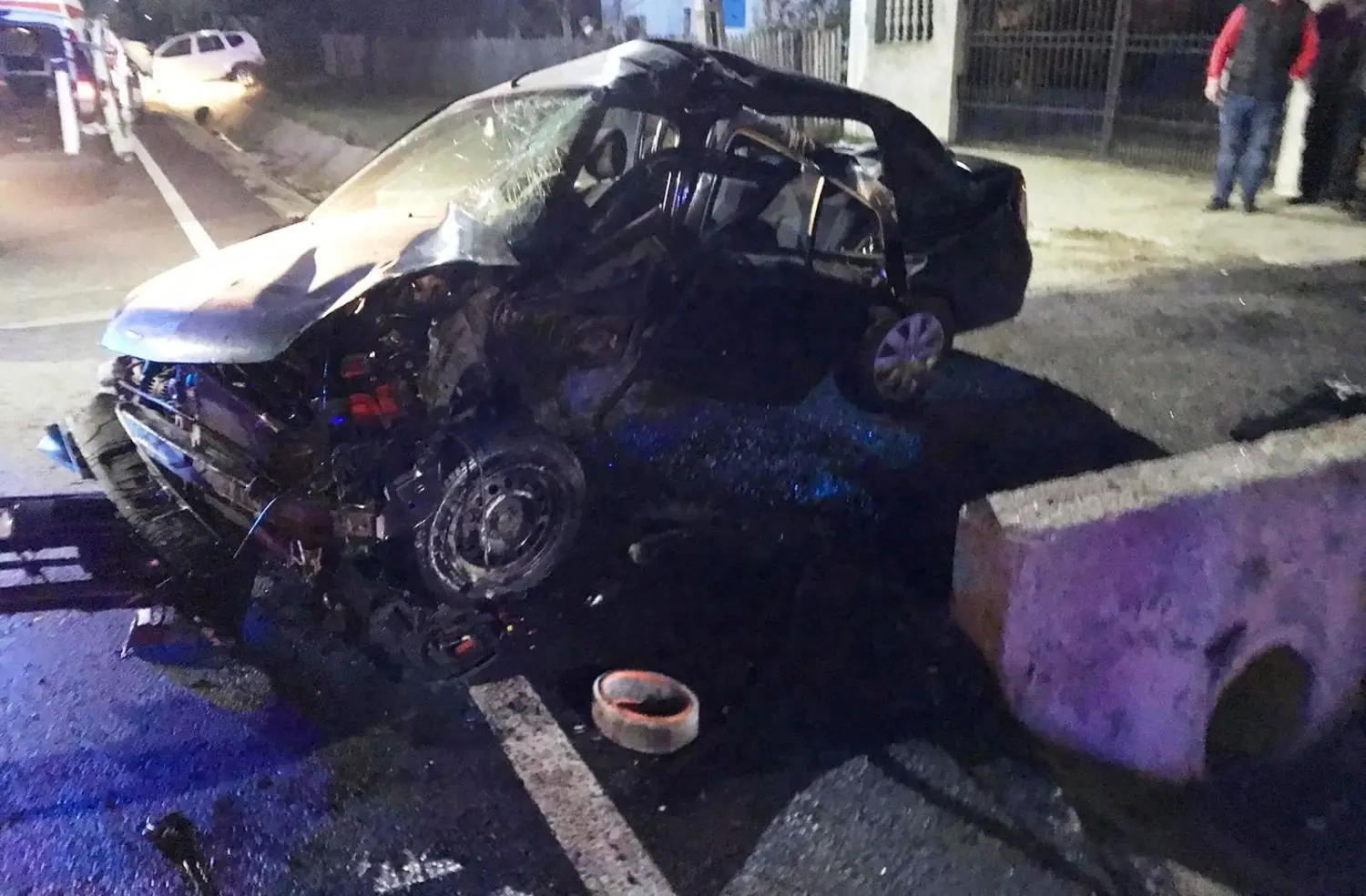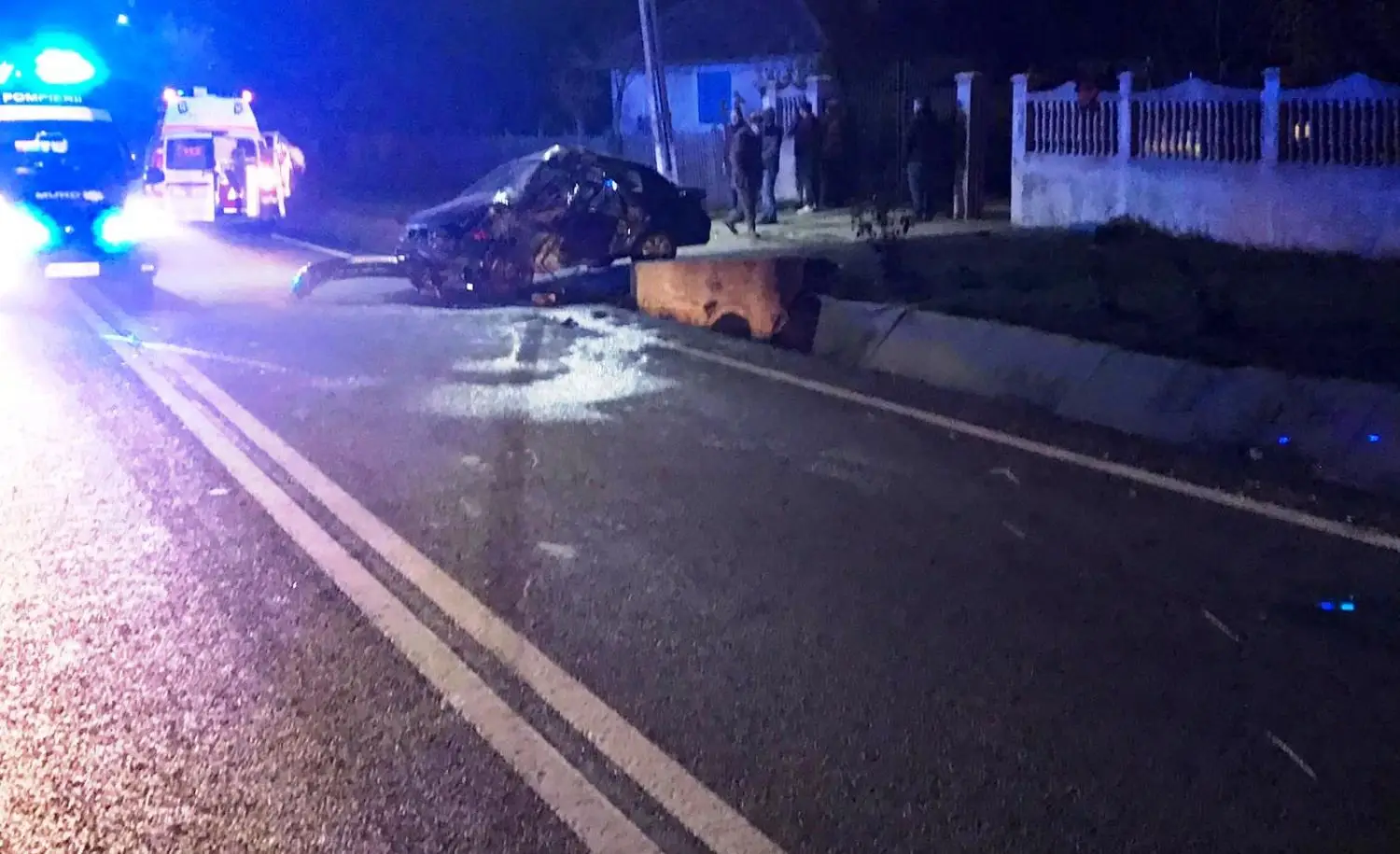 Şoferul nu ar fi adaptat viteza la carosabilul umed, a pierdut controlul direcţiei de mers a autoturismului, a derapat şi a lovit un cap de pod de pe marginea drumului.