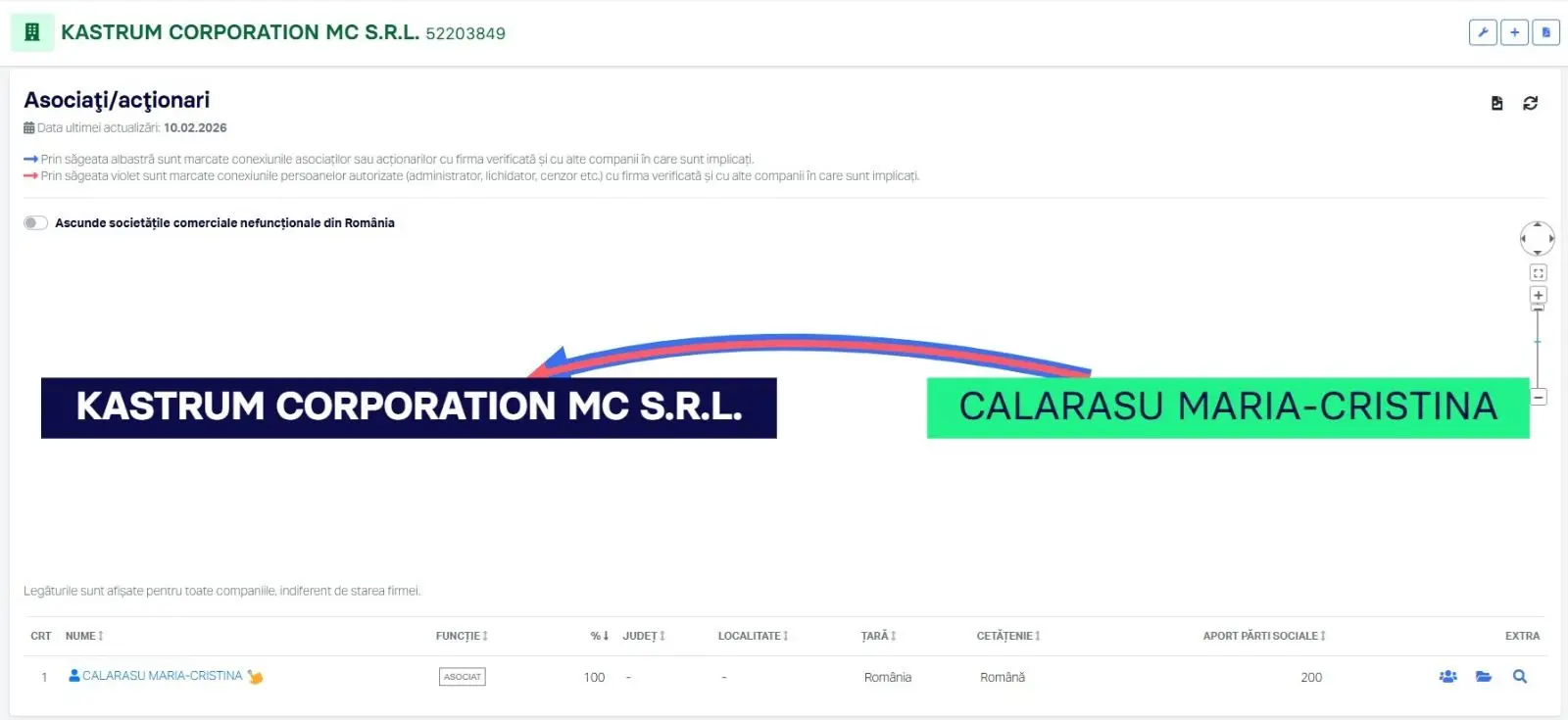 Atunci când activitatea Kalstrom a început să atragă atenția, a apărut Kastrum Corporation MC SRL. Înființată în august 2025 de Călărașu Maria-Cristina, firma a primit girul de a interveni la infrastructura critică a orașului la doar două săptămâni de la înființare.